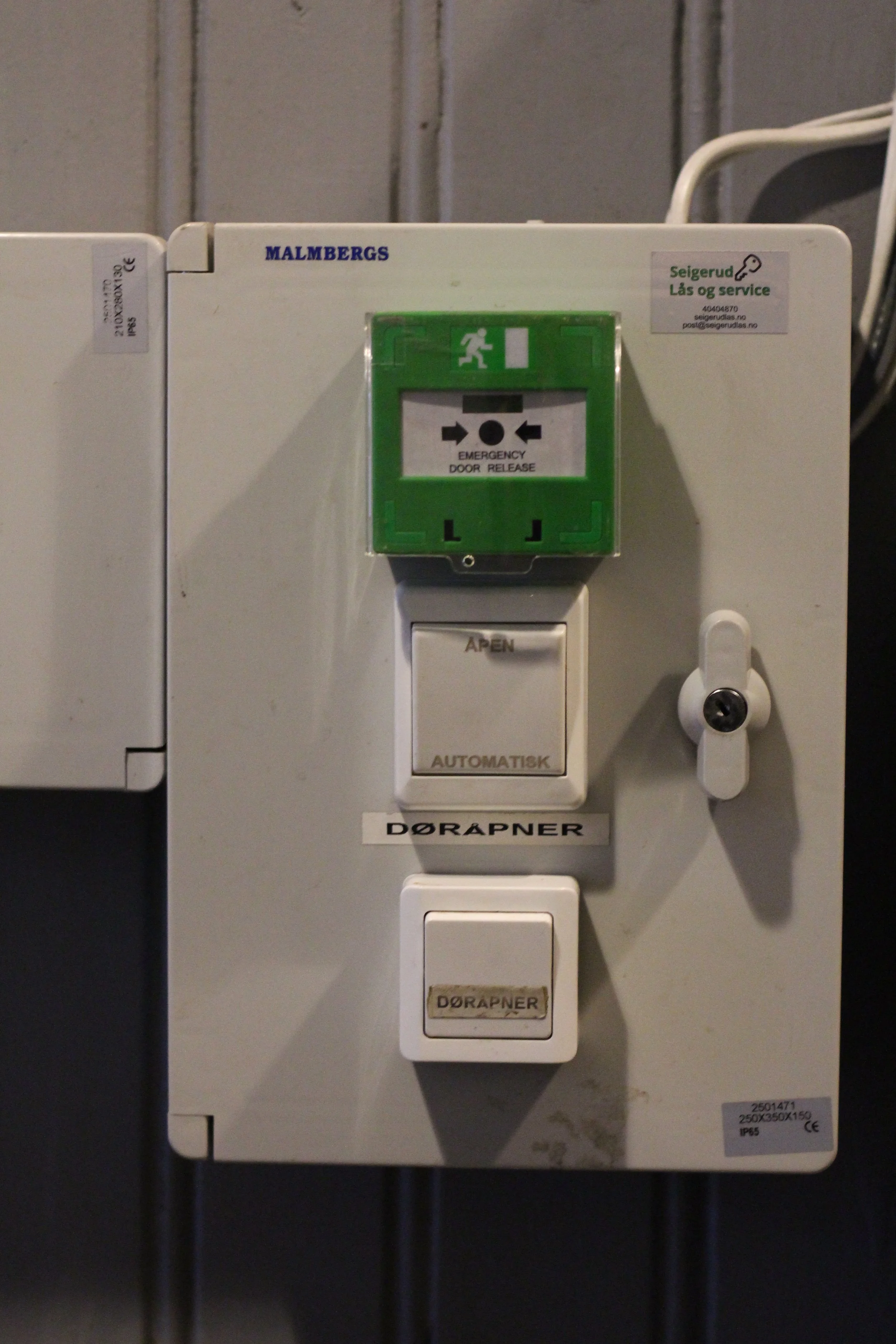 For bedre flyt og avlåsning har Seigerud montert dørautomatikk på porten. Kabler og koblinger er ryddet opp og organisert for enkel oversikt og vedlikehold, noe som sikrer langvarig funksjonalitet og brukervennlighet.