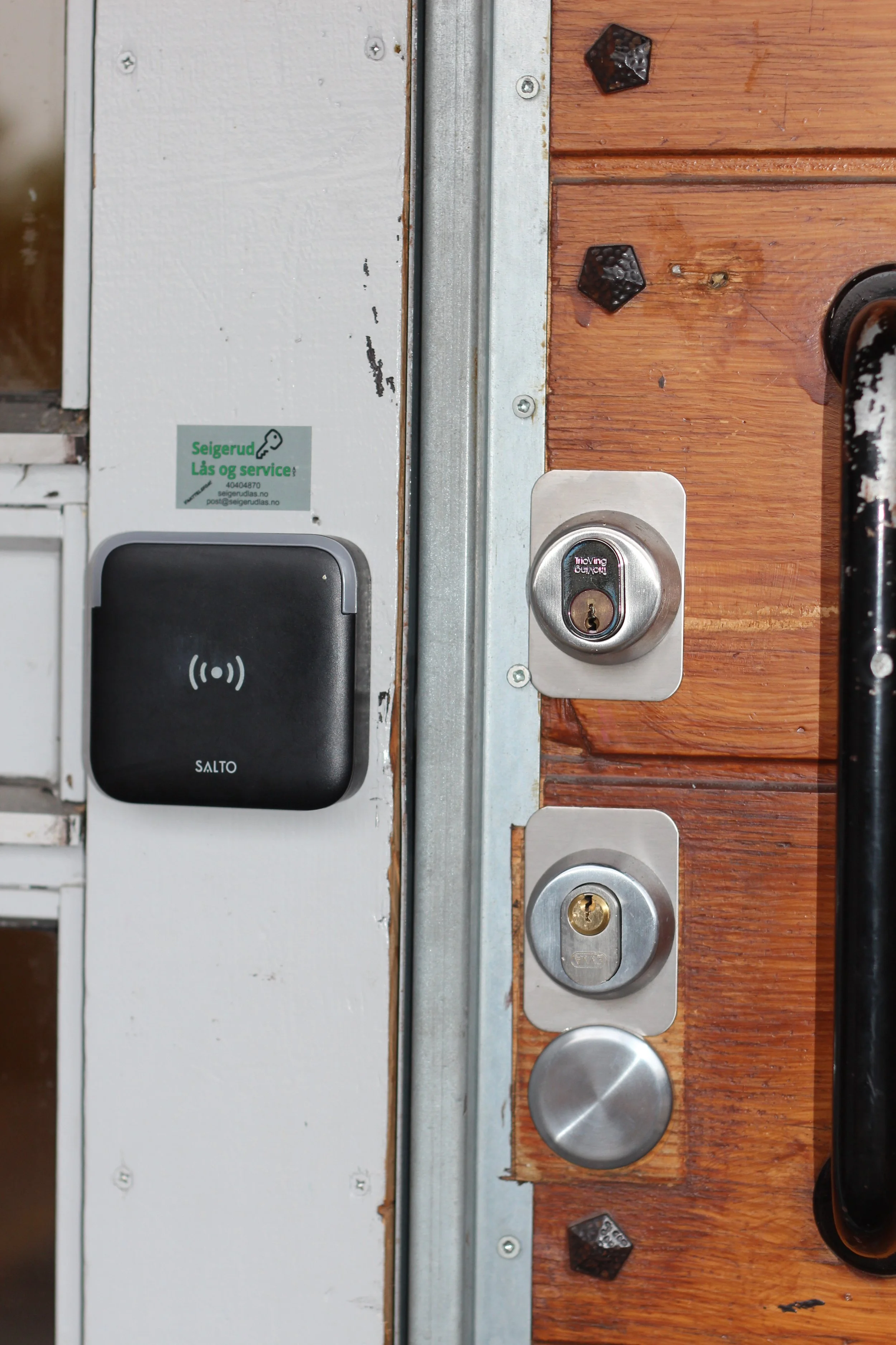 Vi har installert Salto adgangskontroll på 4 oppgangsdører, integrert med eksisterende porttelefon for enkel og trygg adgang. I tillegg er 9 fellesdører utstyrt med Salto langskilt. Systemet åpnes med Unloc, JustIn og/eller brikke, og gir fleksibel tilgang for beboerne. Vi har også montert et patentert låssystem for ekstra sikkerhet og kontroll.